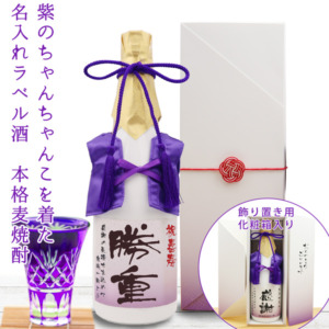 紫のちゃんちゃんこを着た 名入れラベル酒