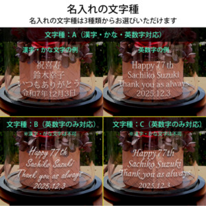 ガラスドームへの名入れには、3種類の文字種をご選択いただけます。