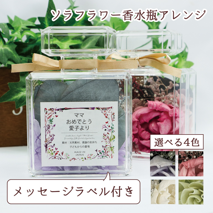 ソラフラワー 香水瓶型ボトルアレンジ <メッセージラベル付き 全4色>